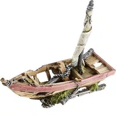 Seilbåt Vrak 29,7×10.5×16.7Cm er en enkel akvariedekorasjon som forestiller en sunket båt.