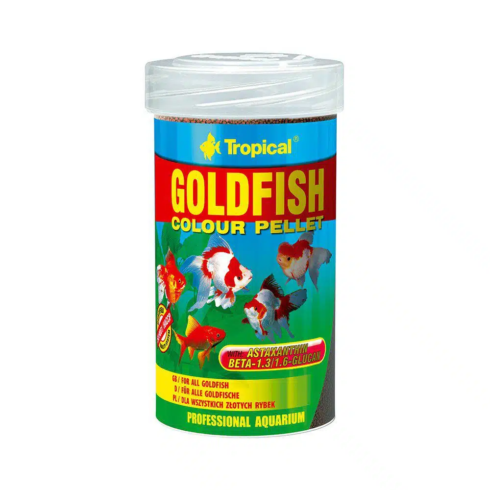 Tropical Goldfish Colour Pellets er laget for alle typer gullfisk og unge koikarper. Den rike blandingen av naturlige ingredienser, inkludert astaxanthin, bidrar til å intensivere fargene deres, og gjør at fisken får en glansfull og strålende utseende. I tillegg inneholder pelletsen stabilisert vitamin C og beta-glukan for å styrke immunforsvaret, noe som er essensielt for helse og velvære.