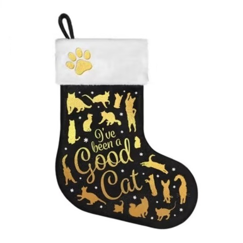 Denne julestrømpen til katt er en flott juledekorasjon laget spesielt for katter og katteelskere. Strømpen er laget av polyester og har teksten “I have been a very good cat” trykket på siden, noe som gir en morsom og sjarmerende julegavefølelse. Med en størrelse på ca. 30 x 1 x 37 cm, passer den perfekt til å henge opp som pynt eller bruke til å fylle med små gaver og godbiter til katten. Julestrømpen har en praktisk opphengsløkke slik at den enkelt kan henges opp i hjemmet.