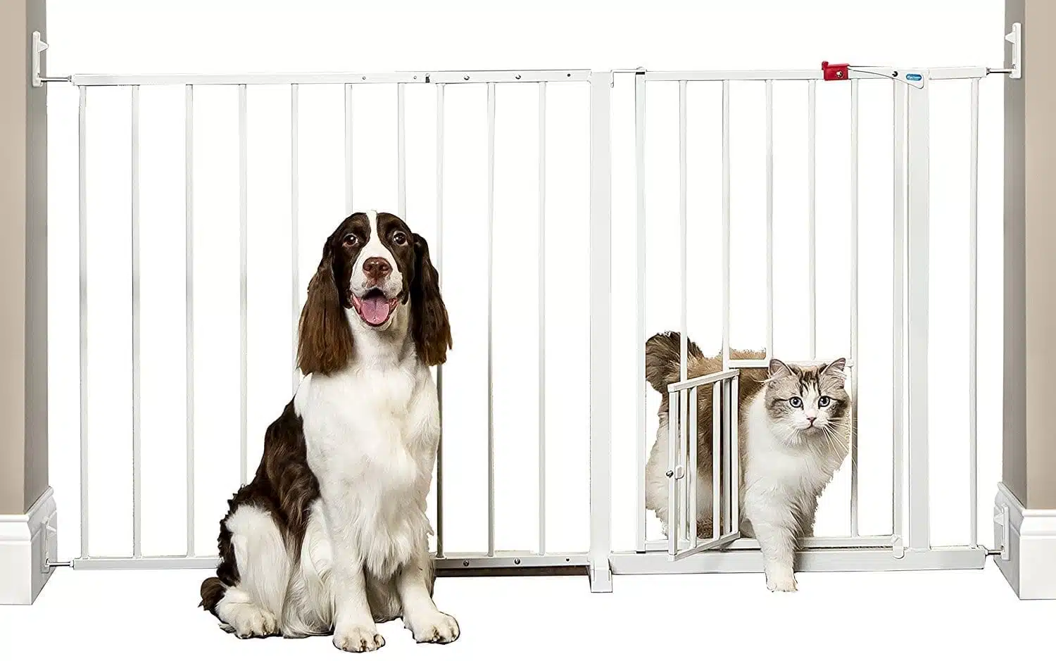 Carlson Maxi Walk-Thru Grind med kattedør – 76 cm høy, bredde 94–152 cm (utvidbar til 396 cm)