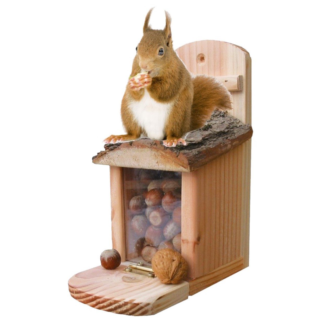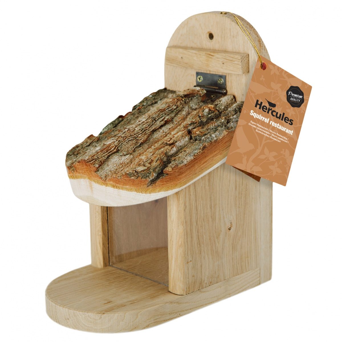 Gjør hagen mer livlig med en sjarmerende ekorn-restaurant i solid eiketre. Denne praktiske fôringskassen er utstyrt med lokk som ekornet selv kan åpne for å hente nøtter eller solsikkefrø – til glede for både dyret og den som ser på. Et morsomt og dekorativt innslag i hagen som samtidig gir ekornene lett tilgang til næringsrik mat.